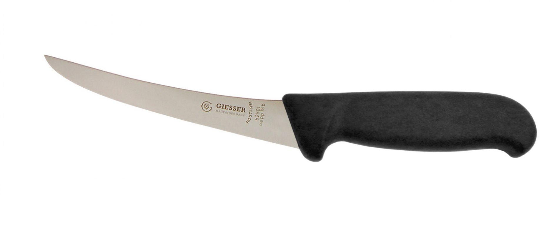 Cuchillo GIESSER para dehuesar, hoja de 13 cm, curva, flexible, PULIDO MATE, mango clásico, negro