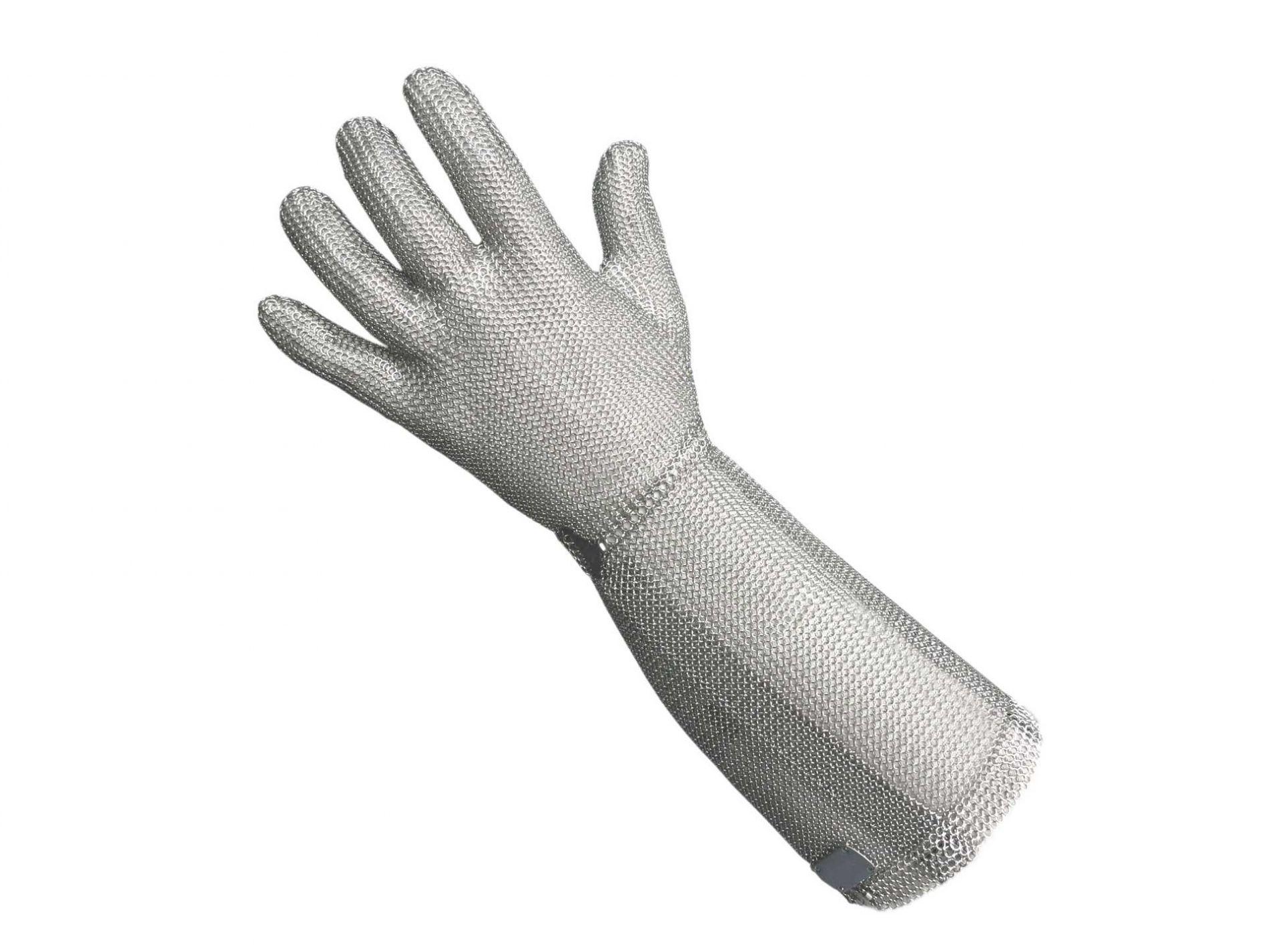 Guante de protección malla ECO-MESH metálico. Blanco. Talla S. Nº1. Manguito de 19 cm. Mano izquierda