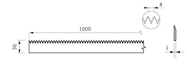 Cuchilla transversal dentada, 1000x30x1mm, paso dientes 4 mm